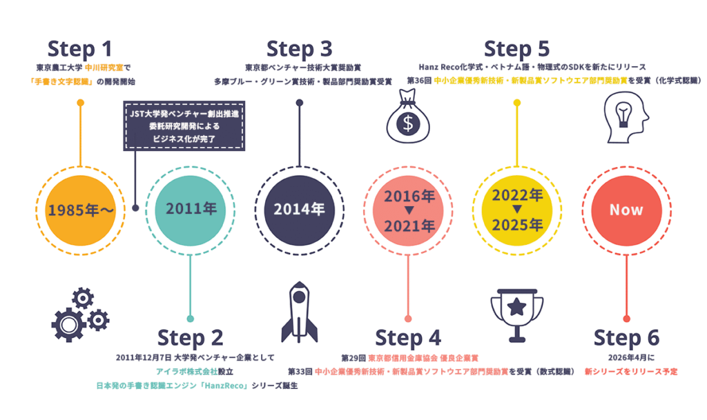 当社は設立2011年ではありますが、手書き文字認識技術の研究開発は1980年代後半から取り組んでいました。